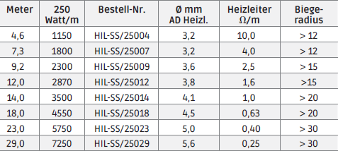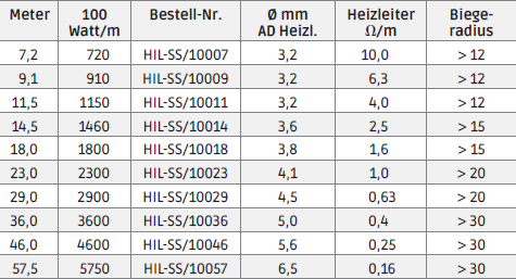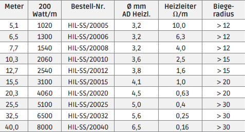 Anwendungsmöglichkeiten: Tauchheizkörper, Behälter-, Ventil-, Pumpen-, Formen-, Platten beheizung. Dieses mineralisolierte Heizkabel mit einem Mantel aus Edelstahl 1.4541 ist unter äußerst korrosiven und feuchten Umgebungsbe dingungen einsetzbar. Das HIL-Heizkabel ist extrem robust und leicht verbiegbar. Der Edelstahlmantel ist wasser-, öl- und gasdicht. Seine Einsatztemperatur bis 800 °C eröffnet eine Vielfalt von Anwendungen. Über eine Verschraubung M20X1,5 kann das Kaltende des Heizkabels in einen Anschlusskasten eingeführt und angeschlossen werden.