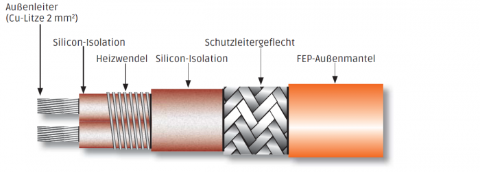 Bei dem HTI-Parallel-Heizband wird die gesamte Länge des Heizbandes zur Temperaturmessung mit dem HTI-Regler herangezogen (integral), damit wird eine gleichmäßige Temperaturmessung über die gesamte Länge erreicht. Weiterer Vorteil: Das Parallel-Heizband ist vor Ort ablängbar und kann bei der Montage speziell auf die zu beheizende Anlage angepasst werden.